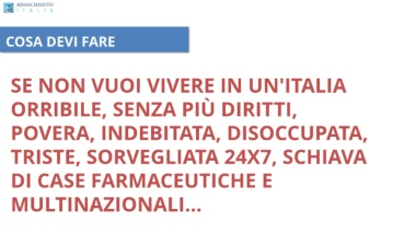 COSA DEVI FARE SE NON VUOI VIVERE IN UN'ITALIA ORRIBILE, SENZA PIÙ DIRITTI, POVERA, INDEBITATA, DISOCCUPATA, TRISTE, SORVEGLIATA 24X7, SCHIAVA DI CASE FARMACEUTICHE E MULTINAZIONALI...