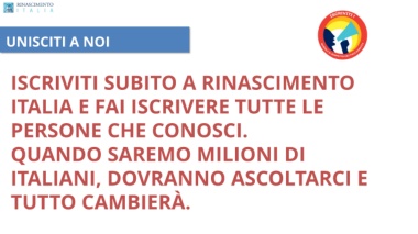 UNISCITI A NOI ISCRIVITI SUBITO A RINASCIMENTO ITALIA E FAI ISCRIVERE TUTTE LE PERSONE CHE CONOSCI. QUANDO SAREMO MILIONI DI ITALIANI, DOVRANNO ASCOLTARCI E TUTTO CAMBIERÀ.